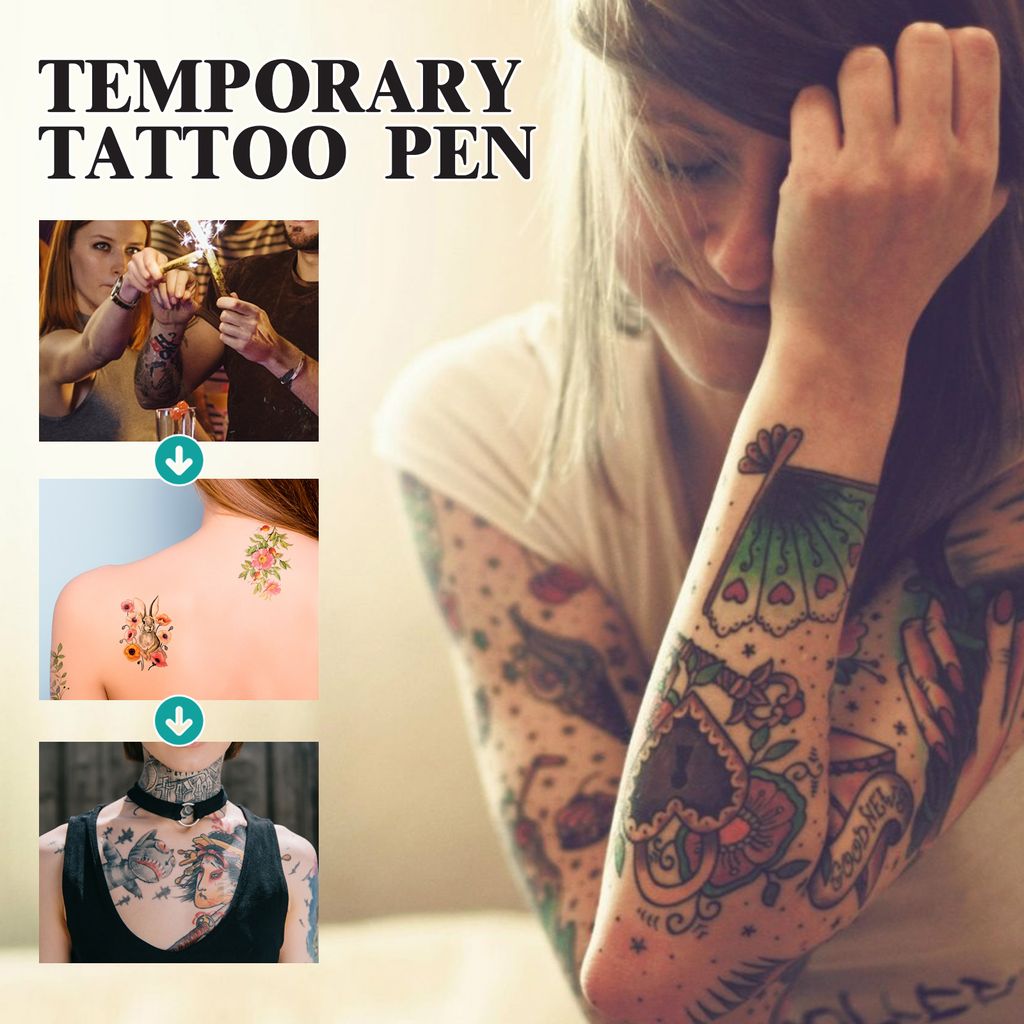 Our temporary tattoo pen set contains carnauba wax and stearic acid. It allows you to either create your own designs to showcase your personal tattoo style, or use ready-made tattoo templates: simply peel the template and stick it on the desired area, then draw over it with the tattoo pen.