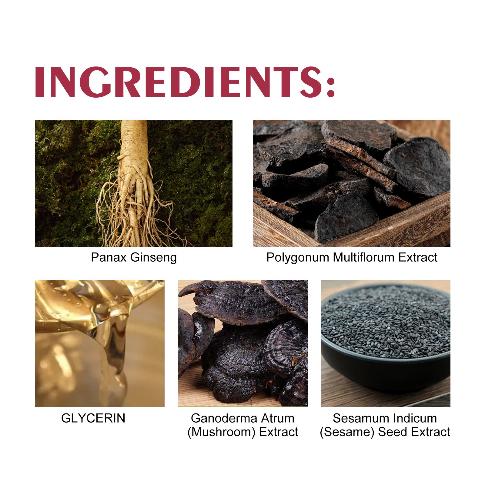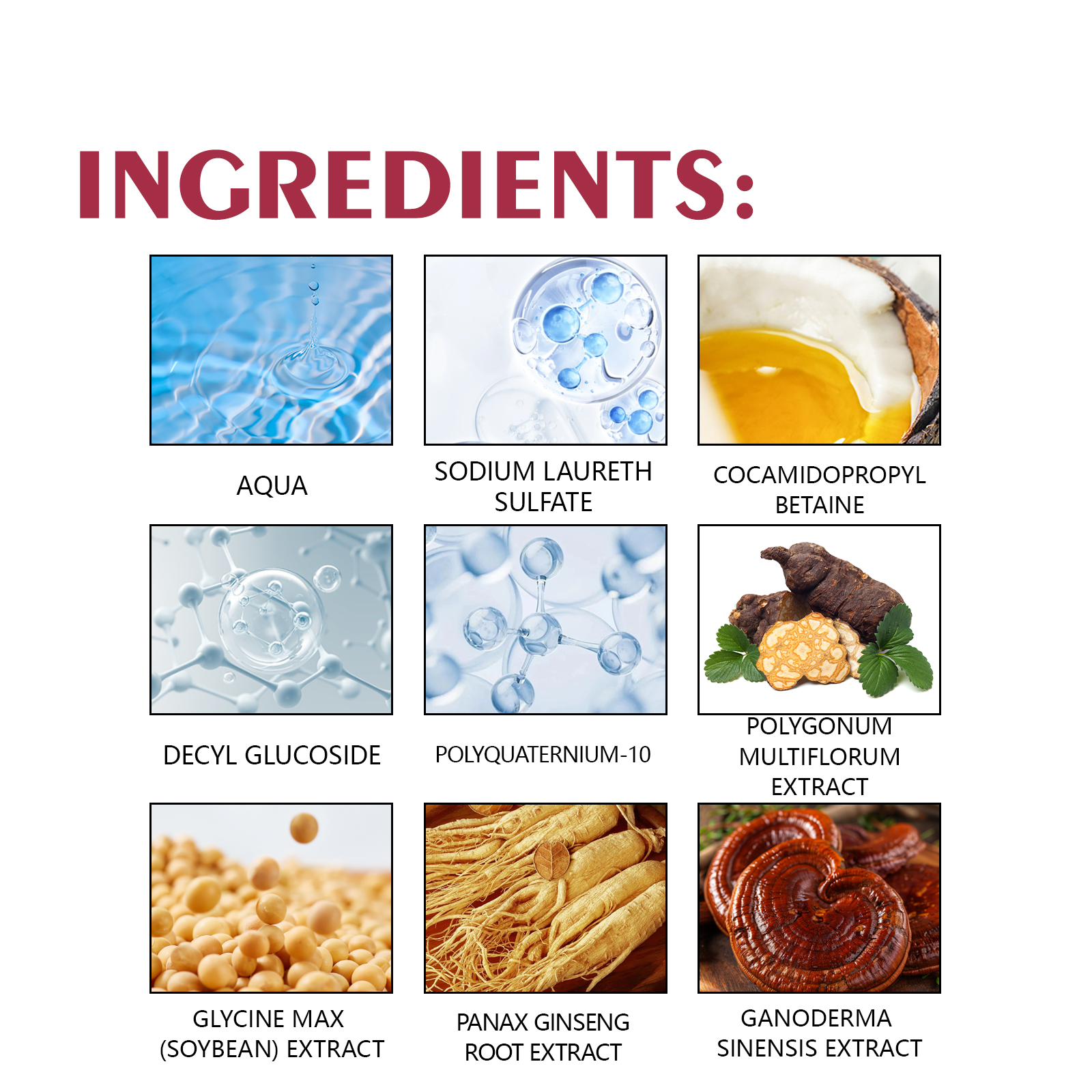 Our Silver Gray Hair Toning Shampoo contains Ginseng Extract and Reishi Mushroom. It effectively nourishes the hair, leaving it soft and shiny with a healthy-looking finish.